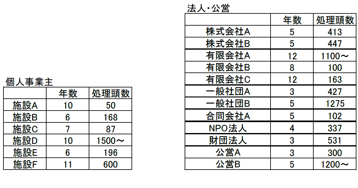・年間処理頭数が100頭以下~1,000頭以上まで施設を規模別に選択