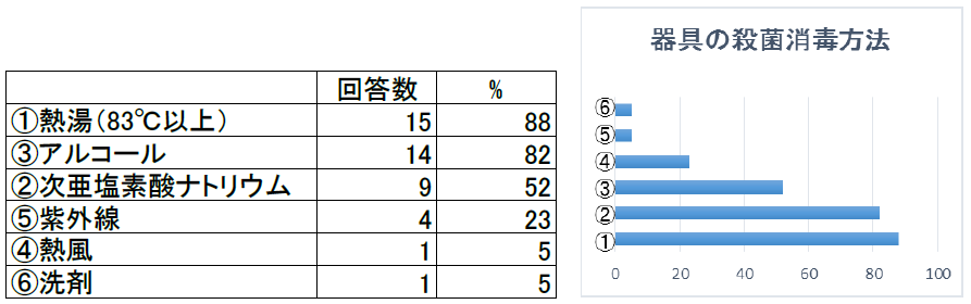 器具の殺菌消毒方法は熱湯、アルコール、次亜塩素酸ナトリウムが主流であった。