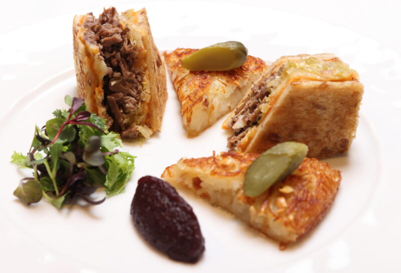 フもう一方は鹿コンビーフを乗せ、残りのグリュイエールをとかし