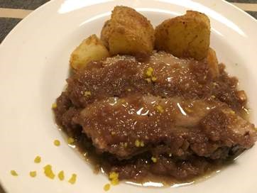 また、残ったスープを煮詰めてソースにすることで、イノシシ肉の持つ良質なたんぱく質を余すことなく堪能できる。柚子の皮のビタミンC含有量は柑橘類でもトップクラスであると言われているが、熱に弱いので、最後にすりおろしたものを肉の上に添えることで、お肉の持つ鉄分の吸収を助けてくれる。ソースに用いた玉ねぎはイノシシ肉が多く持つ、ビタミンB2の吸収を助けるアリシンを含むので、ぜひソースと一緒に召し上がっていただきたい。