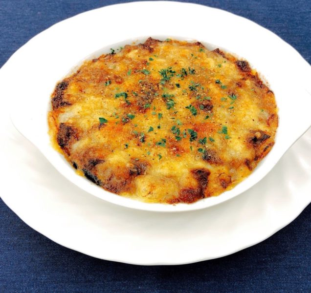 ホワイトソースをかけることにより全体をまとめ調和をとっています。