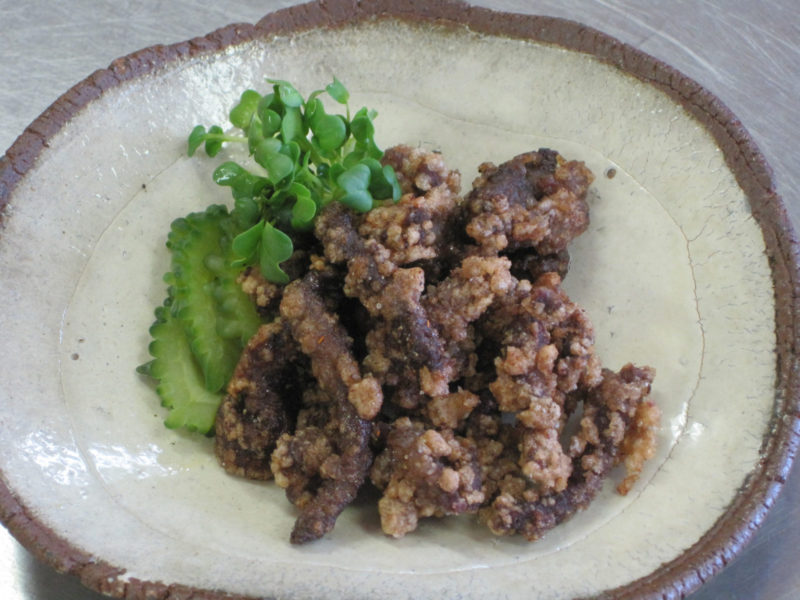子供の頃、学校の給食でよく出ていたメニューに「くじらの竜田揚げ」がありました。今でも懐かしく思い出しては作ってみます。猪の肉は血抜きと解体さえよければ臭みもありません。山都町は人口より有害鳥獣が多いかもしれません。しかし、有害鳥獣とはいえ命あるものを頂くわけですからシンプルで素材の味が楽しめて「おいしく」「簡単に」「たくさんできる」も含めて子供たちが心から美味しく「いただきます」と言えるメニューにしました。