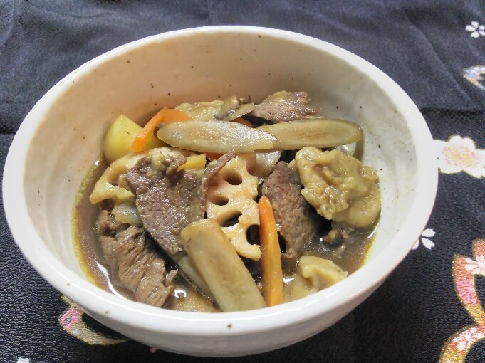 ★特に牛肉と牛蒡のしぐれ煮は家庭でもよく食べられており、牛肉と牛蒡の相性はバッチリですが、牛肉に代わり鹿肉で汁多めに仕上げました…鹿もも肉は醤油で煮込むと牛肩ロースと見た目も食感も同じです