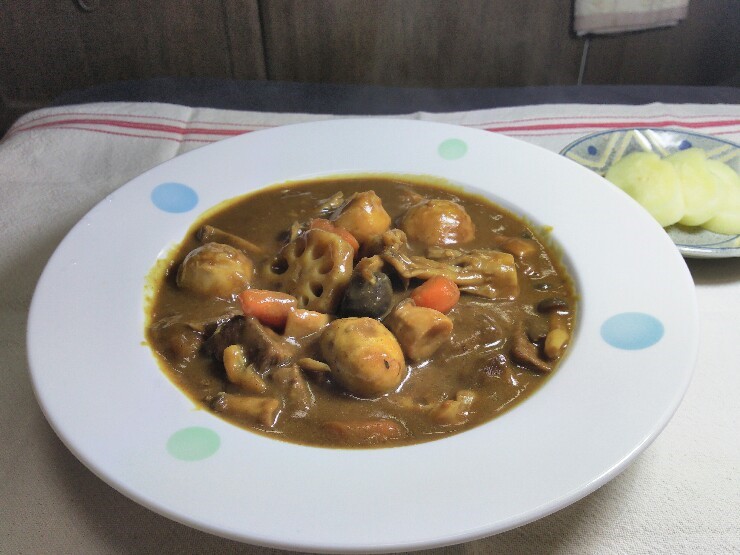 ・私の経験から、給食の対象のメインは子供たち、彼らはジビエにはすんなり馴染めないと思います。普段子供たちが好んで食べるカレーなら、風味や食感には抵抗はないでしょう。そこで少しマジカルに鹿肉をヘットでソテーしコーティングしました。