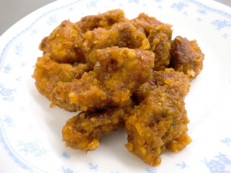 ・鹿肉を薄切りにすることで加熱による硬さを和らげ、下味にタンパク質分解酵素を含む梨と生姜を加えることで、軟らかさと風味が増します。味付けにケチャップを加えるなど甘味と酸味のバランスも考え、らっきょうのシャキシャキした食感も楽しめるため、児童生徒にも食べやすいおかずです。