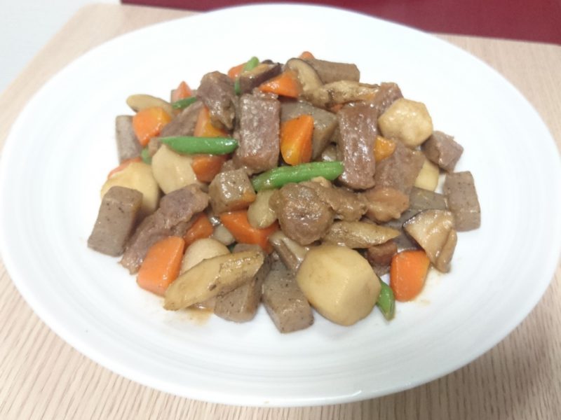 地元の給食でも出てくる調理法なので子供たちにも認識があり受け入れてもらいやすい味付けと思います。里芋と猪肉の弾力の差がいいアクセントにもなっています。