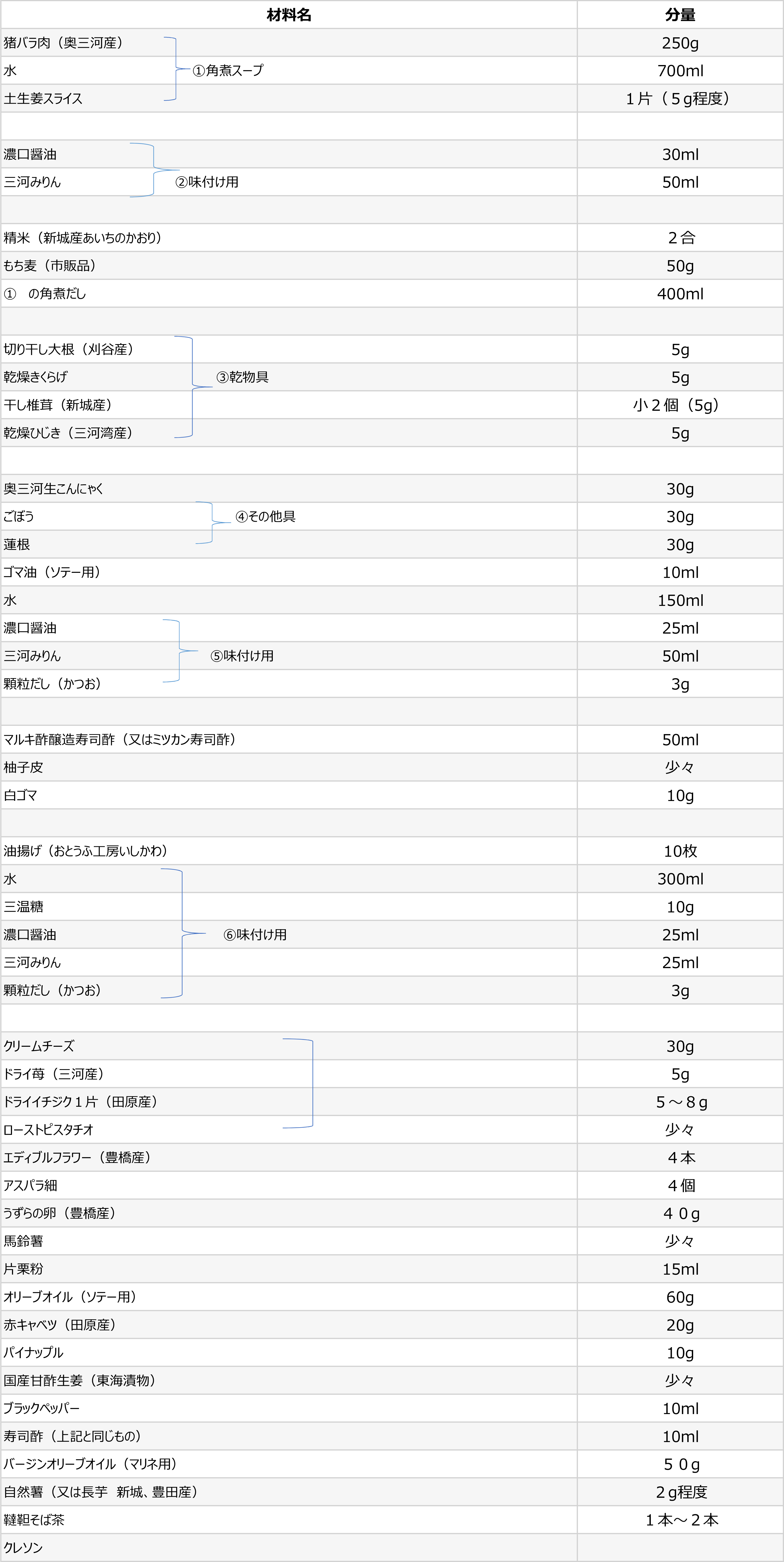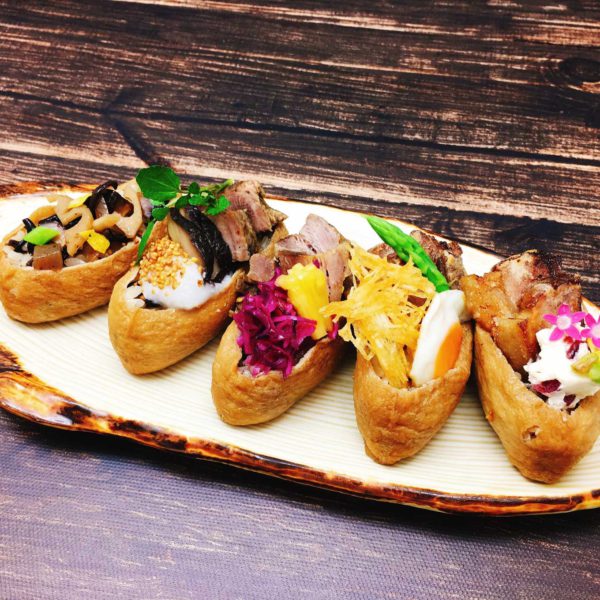 稲荷に猪肉を入れ五穀豊穣、商売繁盛など祈願する際やお祭りお祝いごとにも提供されるようなカラフルな見た目の料理を目指しました。
