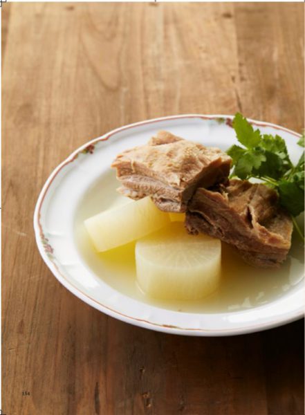 猪の脂は、煮込むとその甘さとプルプルとした食感の魅力が引き立ちます。うま味とコク深いお出汁も出るので、大根も一緒に煮込んで楽しんでください。