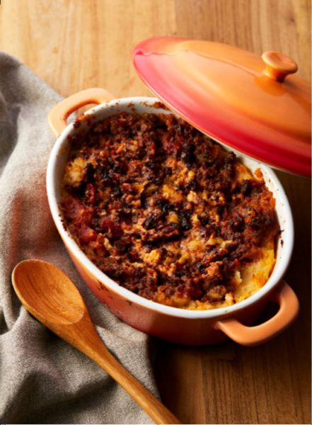 - 耐熱皿に④をしき、③をかけ、チーズを振りかけて200度に予熱したオーブンで15分焼く。