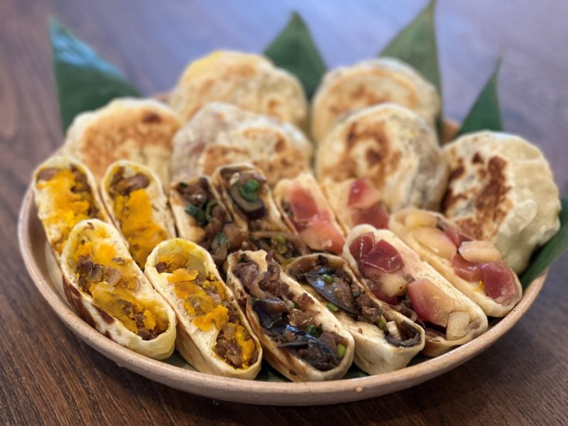 三種のおやきの中身は秋の食材を沢山使用しました。一種類目のおやきは、秋でも美味しい茄子としめじと分葱を使い甜面醤で甘辛く中華風に仕上げました。しめじは、一年中簡単に手ごろな値段で入手できるだけでなく、低カロリーで豊富に含まれる食物繊維は腸内環境を整え、動脈硬化などの生活習慣病にも効果があります。しかもイノシシ肉と合わせると疲労回復倍増です。さらにねぎのもつアリシンは、ビタミンB1の吸収率を高める働きがあり、イノシシ肉と合わせることでより効果が高まります。