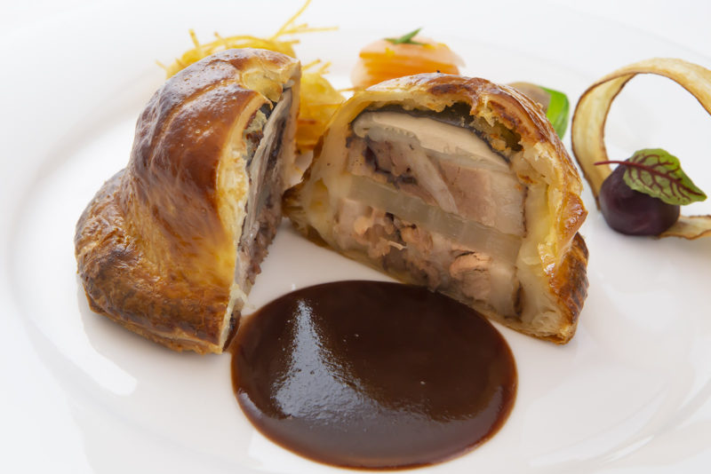 私が生まれ育った北海道ではイノシシは生息はしておらず、今まで全く触れたことがありませんでした。なので、今回あえてイノシシを選択しました。地元食材を使用するということだったのでハスカップを使用したハスカップワインでイノシシを煮込み、旬の食材と一緒にパイで包んだ一皿を考えました。